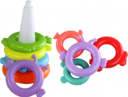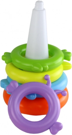 Prinderea, înșirarea și stivuirea inelelor întăresc motricitatea fină și coordonarea mână–ochi. Jucărie didactică ideală pentru micii exploratori.