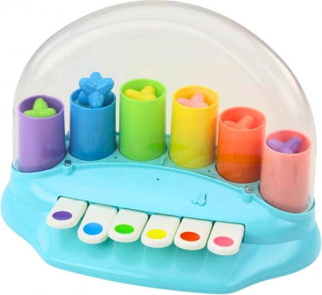Această jucărie nu doar distrează copilul prin sunete și efecte, ci îi dezvoltă și abilitățile senzoriale și coordonarea motorie. Interacțiunea cu pianul încurajează experimentarea, explorarea de sunete noi și forme spațiale, susținând dezvoltarea creativă a copilului.