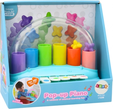 Pianul cu steluțe săltărețe, în culoarea albastră, este o jucărie deosebită care îi introduce pe cei mici în lumea magică a muzicii și a luminii. Proiectat având în vedere siguranța și dezvoltarea copilului, acest pian oferă nu doar sunete, ci și efecte vizuale sub forma unor steluțe colorate care sar în aer la fiecare apăsare a unei clape.