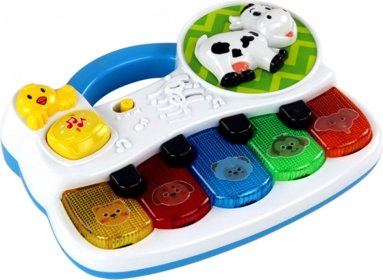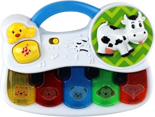 Fiecare clapă atrage prin culoare și motivul animalului, iar la apăsare redă un ton sau un sunet care susține dezvoltarea auzului și învățarea prin joacă.