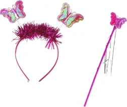 Bentiță asortată cu fluturași și baghetă sclipitoare care vor crea distracție și poze minunate. Ideal pentru carnaval sau petrecerea de ziua de naștere.