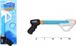 Această pistolă cu apă compactă este ideală pentru copii și adulți. Datorită lungimii de 30 cm, se potrivește perfect în mână, este ușor de utilizat și oferă un raza de acțiune fiabilă a jetului pentru dueluri acvatice grozave în grădină, la piscină sau pe plajă.