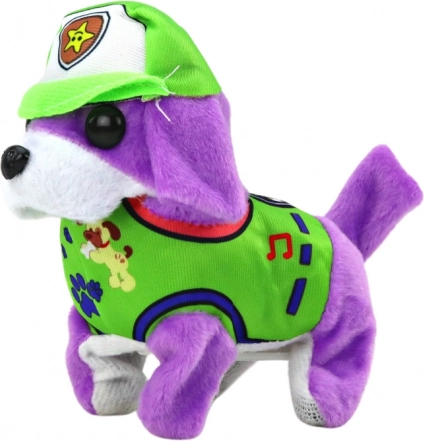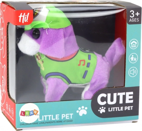 Vă prezentăm adorabilul căţeluş interactiv de pluș, care va deveni tovarășul preferat al copilului dumneavoastră! Acest căţeluş drăgălaș este de culoare mov și poartă o căciuliță și haine verzi. Datorită dimensiunilor sale compacte, poate fi luat cu ușurință oriunde. După pornire, prinde viață lătrând vesel și mișcându-se, atrăgând instant atenția celor mici. Comportamentul său interactiv îi încurajează pe copii la joacă și râs datorită mișcărilor amuzante.