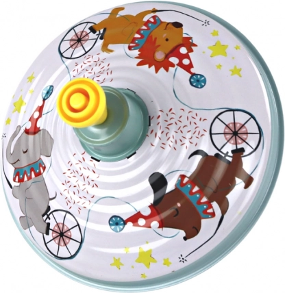 Titirezul nostru rotativ este un simbol clasic al copilăriei, care încântă și fascinează până în prezent. Este confecționat din metal, oferind nu doar durabilitate, ci și caracterul autentic al unei jucării tradiționale. Decorat cu un motiv cu animale de circ, titirezul capătă un farmec aparte, care se potrivește perfect atmosferei jucăușe.