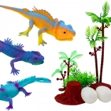 Acești creaturi pitorești îmbogățesc nu doar imaginația, ci și spațiul de joacă. Copiii pot crea propriile scenarii, pot descoperi secretele naturii sălbatice și pot imita comportamentul animalelor. Setul include, de asemenea, plante, doi copaci și ouă de șopârlă pentru o experiență și mai realistă.