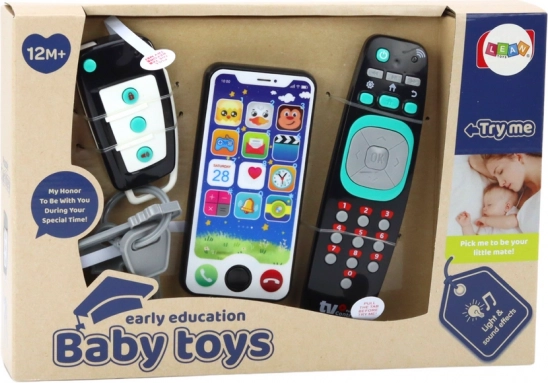 Set de jucării realiste care vor oferi micuțului tău multă distracție și posibilitatea de a descoperi lumea într-un mod plăcut și educativ! Setul nostru include chei de mașină, o telecomandă și un smartphone – obiecte pe care copiii le imită cu plăcere după ce îi observă pe adulți.
