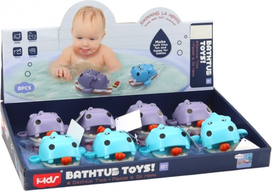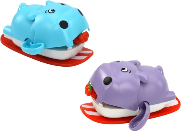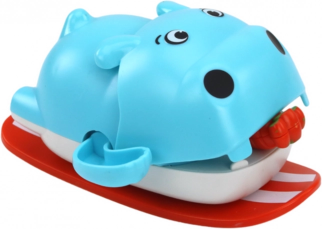 Hipopotamul cu mecanism de întoarcere pe o plăcuță plutitoare este jucăria de baie ideală pentru cei mici. După întoarcerea „morcovului” din gură, hipopotamul pornește singur pe suprafața apei și aduce copilului multă bucurie. Datorită designului prietenos și dimensiunilor compacte, se ține ușor în mână și îi motivează pe copii la joacă în apă.
