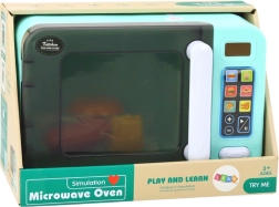 Cuptorul cu microunde interactiv pentru copii, în culoarea turcoaz, transformă jocul de-a bucătarul într-o experiență realistă. Oferă efecte luminoase, farfurie rotativă, ușiță deschizabilă și programe de încălzire. Include alimente distractive (hamburger, cartofi prăjiți, hot dog) și baterii pentru utilizare imediată.