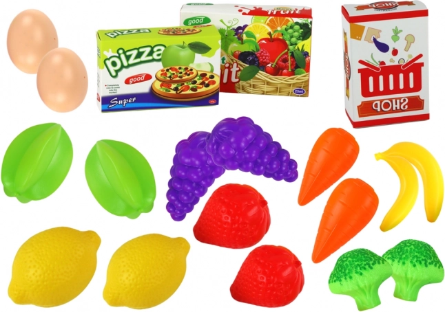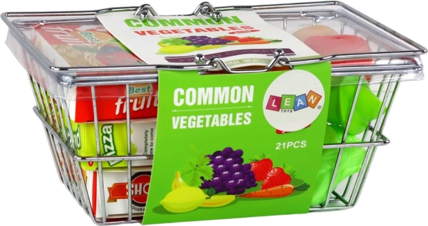 Acest coș de cumpărături autentic pentru copii, din metal, transformă orice joc într-o sesiune reală de cumpărături. Setul include o selecție variată de alimente – de la fructe și legume până la pizza și suc – astfel încât copiii pot exersa recunoașterea alimentelor, numărarea și jocurile de rol inspirate din viața de zi cu zi.