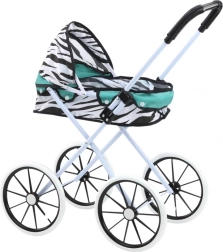 Un cărucior stilat pentru păpuși, cu roți mari din spumă și capotină pliabilă, oferă plimbări realiste și manevrare confortabilă. Datorită construcției pliabile, se depozitează și se transportă ușor. Veselul model zebră cu elemente turcoaz susține jocul creativ și dezvoltarea empatiei.