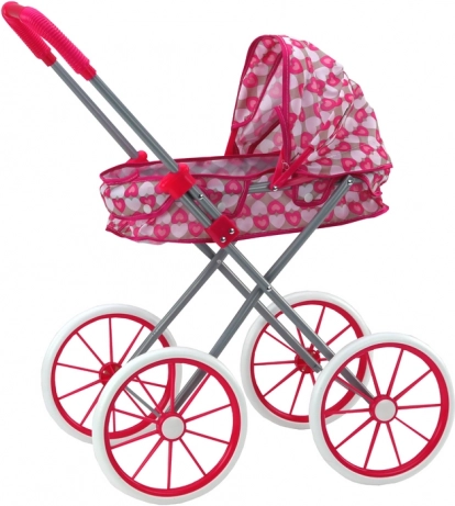 Drăguțul cărucior roz pentru păpuși, cu model de inimioare, va încânta orice mică mămică. Oferă un design stilat, roți mari din spumă pentru o rulare lină, capotină pliabilă și pliere ușoară pentru depozitare practică. Grozav pentru dezvoltarea imaginației, empatiei și abilităților sociale.