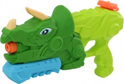 Pistolă cu apă dinozaur Triceratops este o alegere excelentă pentru bătăliile de apă ale copiilor. Acest dinozaur verde, cu detalii portocalii și albastre, este proiectat pentru a oferi distracție maximă cu siguranță pentru copii. Capacitatea rezervorului este de aproximativ 1000 ml, iar datorită mânerului de pompare, apa este proiectată din gura dinozaurului.