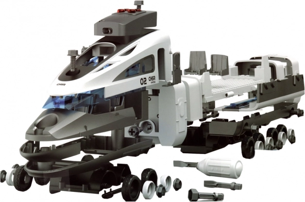 Trenulețul realizat realist, inspirat de garniturile de mare viteză HYPERLOOP, îi introduce pe copii în lumea căilor ferate. Piesele pot fi ușor înșurubate și reasamblate cu șurubelnița inclusă, cu capete interschimbabile – ideal pentru dezvoltarea motricității fine, a concentrării și a gândirii tehnice.