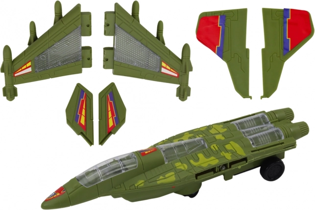 Camuflajul verde, liniile aerodinamice și cockpitul transparent oferă modelului un aspect autentic de avion de vânătoare adevărat. Un plus grozav pentru flota copilului.