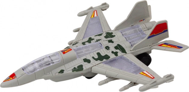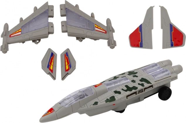 Camuflajul gri, aripile proeminente și detaliile de armament amintesc de adevăratul avion de vânătoare F‑35. Copiii pot intra ușor în rolul unor piloți curajoși și pot imagina numeroase misiuni pline de acțiune.