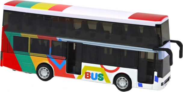 O jucărie distractivă și rezistentă pentru micii fani ai transportului urban: autobuz metalic etajat cu mecanism inerțial (prin fricțiune), efecte luminoase și sonore și uși și compartiment pentru bagaje deschizibile. Construcția metalică asigură o durată de viață îndelungată, iar detaliile realiste încurajează jocul creativ.