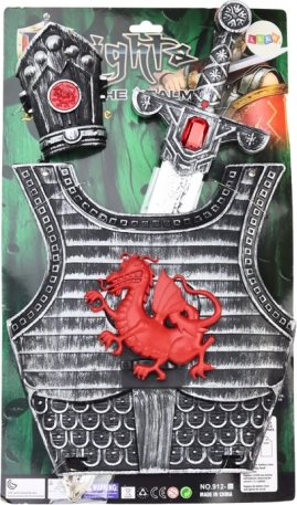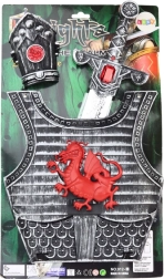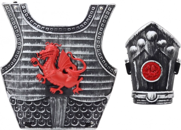 Acest costum de cavaler pentru copii este conceput pentru jocuri imaginative de eroi și deghizări de carnaval. Armura cu dragon roșu, sabia stilată și tibiera formează o triadă echilibrată de accesorii care oferă fiecărui mic luptător încredere și autenticitate. Execuția durabilă din plastic și detaliile atent lucrate susțin ore îndelungate de joacă sigură.