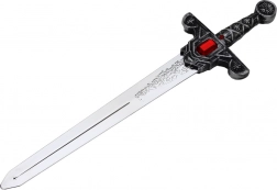 O sabie stilată, cu lamă argintie și mâner decorat, este accesoriul perfect pentru jocul imaginativ și sigur al micilor cavaleri.