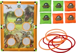 Jocul este format dintr-o placă de joc solidă și colorată, decorată cu imagini ale diferiților dinozauri, care nu doar susțin jocul, ci stimulează și imaginația copiilor. Placa de joc include un sistem de punctaj care aduce în joc un element de competiție și entuziasm. Setul include, de asemenea, săculeți special concepuți pentru stabilitate în zbor și aruncări precise, precum și cercuri.