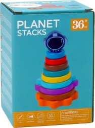 Descoperă universul cu piramida stivuibilă din lemn cu planete! Această jucărie educativă dezvoltă motricitatea fină, coordonarea mână–ochi și gândirea logică. „Planetele” colorate se așază de la cea mai mare la cea mai mică și sunt completate de o cască spațială distractivă. Realizată în siguranță din lemn, cu certificări CE și EN71, potrivită pentru copii de la 3 ani.