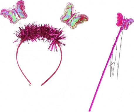 Setul include o bentiță roz pentru păr cu urechiușe adorabile de fluture, care adaugă capului copilului un plus de farmec și eleganță. Datorită baghetei din material lucios, copilul se simte ca o adevărată zână, care face vrăji magice și îndeplinește dorințe.