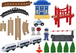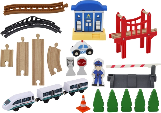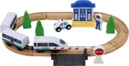 Acest circuit feroviar din lemn de înaltă calitate le aduce copiilor lumea aventurilor feroviare. Datorită accesoriilor bogate – inclusiv pod, stație de poliție, barieră, indicator STOP și figurină polițist – pot crea propriile povești și își pot dezvolta creativitatea. Șinele stabile din lemn permit construirea unor circuite variate cu lungime totală de până la 3,2 m.
