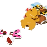 Puzzle-ul include denumirile animalelor în limba engleză. Ajută copiii să învețe numele diferitelor animale și îmbunătățește abilitățile cognitive.