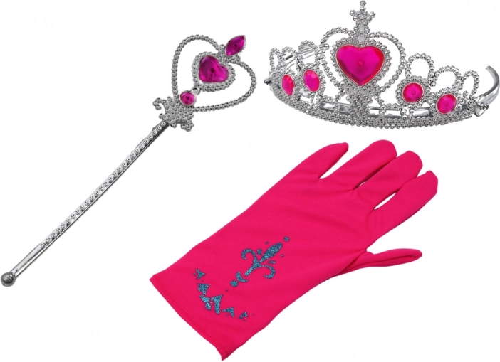 Zest de accesorii pentru mica prințesă: baghetă, mănușă, coroană și cozi împletite