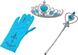 Transformați copilul dumneavoastră într-o adevărată prințesă cu setul nostru de accesorii pentru mica prințesă, care conține o mănușă sclipitoare albastră, o baghetă magică și o coroană împodobită cu diamante albastre.