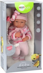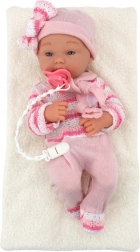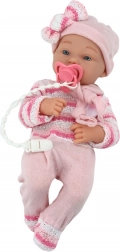 Acest bebeluș-păpușă roz, cu un pulover în dungi, căciuliță și fular, este partenerul ideal pentru joaca de zi cu zi. Datorită membrelor mobile, păpușa poate fi ușor așezată sau culcată, ceea ce stimulează scenarii creative și îngrijirea realistă.