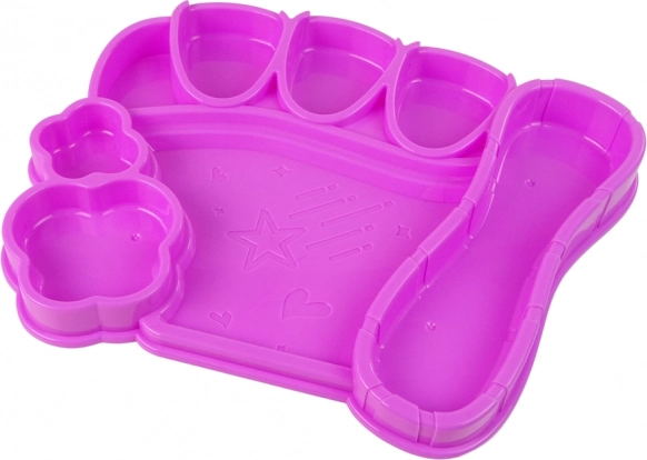 Pachetul conține crete în culorile roz, verde și mov, o placă pentru copii pentru aplicare, 6 elastice, 3 tampoane pentru ștergerea cretei, o agrafă, un pieptene și o oglindă.