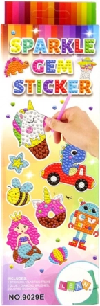 Transformă timpul liber în distracție creativă cu setul de autocolante pentru pictură cu diamante. Copiii creează imagini sclipitoare pe șabloane pregătite, folosind pietricele colorate – antrenând astfel răbdarea, precizia și simțul culorilor și al compoziției. Ideal pentru după-amieze liniștite acasă sau ca un cadou original.