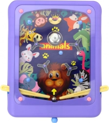 Distractivul joc de îndemânare pinball în culoare mov, cu un motiv drăguț cu animăluțe, va încânta atât copiii, cât și adulții. Cu ajutorul manetelor laterale controlezi bila și încerci să nimerești zonele țintă de pe suprafața de joc. Jocul dezvoltă coordonarea și reflexele rapide și oferă distracție nesfârșită pentru întreaga familie. Potrivit pentru copii de la 3 ani, certificare CE și conform EN71.