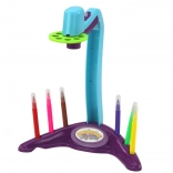 Proiectorul de desen pentru copii dezvoltă creativitatea și motricitatea fină. Conține 3 discuri interschimbabile cu imagini și un set de markere colorate pentru copiere și colorare ușoară. Operare simplă, alimentare pe baterii, potrivit pentru copii de la 3 ani, cu certificare CE și conformitate cu EN71.