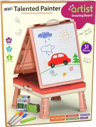 - Tablă pentru copii, dublă față, 3‑în‑1, cu măsuță și jocuri de societate