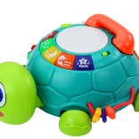 Tamburul interactiv de pe spatele țestoasei cu efecte de lumini contribuie la experiențe senzoriale și oferă o porție suplimentară de distracție și creativitate. Butonul în formă de țestoasă lângă tambur declanșează mișcarea țestoasei, susținând implicarea imaginației și motricității copiilor.
