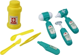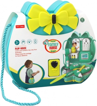 Deschizând poșeta, copiii descoperă o gamă întreagă de instrumente medicale care vor stimula imaginația și îi vor încuraja să se joace creativ. Setul include un termometru, un otoscop și o cutie pentru pastile, permițând micilor doctori să ofere îngrijire completă pacienților.