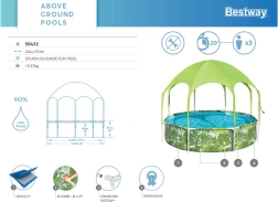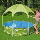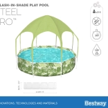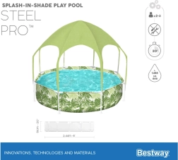 Piscina Bestway SPLASH-IN-SHADE este concepută pentru a-i motiva pe copii la mișcare și distracție acvatică sigură în grădină. Copertina cu duză integrată oferă umbră și răcorire; este suficient să conectați furtunul de grădină și distracția poate începe. Grafica estivală colorată îi va încânta pe micii înotători, iar structura solidă asigură stabilitate pe tot parcursul verii.