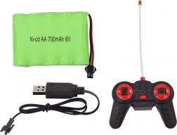 Mașina este alimentată de o baterie de 6V 500mAh, care este inclusă în set. Încărcătorul este inclus în pachet.