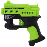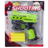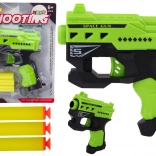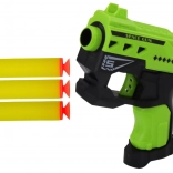 Mini pistol ușor și rezistent pentru săgeți din spumă cu ventuze, într-o culoare verde atrăgătoare, ideal pentru distracția copiilor acasă și în aer liber. Întinderea ușoară și apăsarea trăgaciului pot fi realizate chiar și de cei mai mici, iar în pachet se găsesc 3 săgeți cu ventuză. Jocul susține motricitatea fină și imaginația. Certificare CE, standard EN71, recomandat de la 6 ani.
