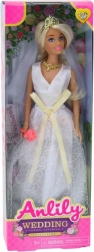 Prezentăm Păpușa Anlily în rochie de mireasă, care cu detaliile sale atent realizate va atrage atenția fiecărui copil. Este îmbrăcată într-o rochie lungă albă, care subliniază subtilitatea și eleganța. Partea din față a rochiei este deosebită printr-o fundă bej, adăugând un plus de șarm.