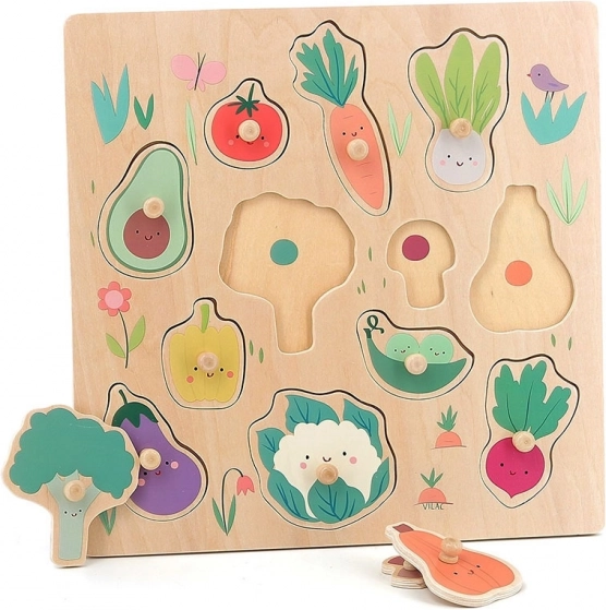 Puzzle Vilac cu legume și mânere este jucăria ideală pentru copii, combinând distracția cu învățarea. Cu ajutorul mânerelor din lemn, cei mici pot manipula ușor toate piesele și își dezvoltă abilitățile motorii fine și abilitățile cognitive.