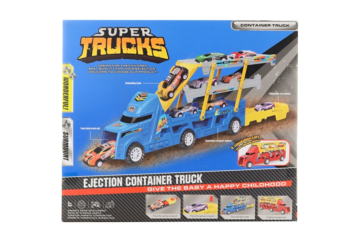 Set distractiv pentru micii șoferi, care aduce curse pline de acțiune: un camion mare, 6 mașinuțe de curse și o platformă de lansare detașabilă. Printr-o singură apăsare de buton, mașinuța este lansată rapid prin partea inferioară a camionului. Jucăria ideală pentru joacă dinamică, dezvoltarea motricității și a imaginației copiilor de la 3 ani.