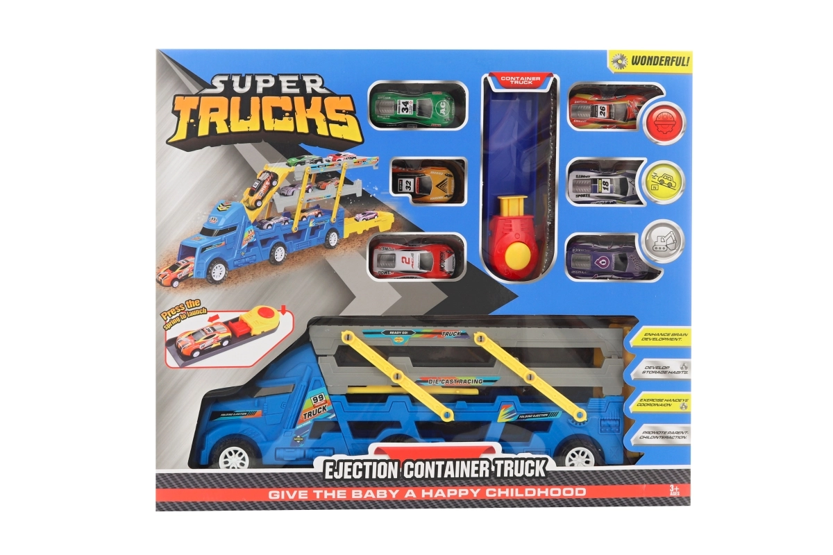 Descoperă lumea plină de acțiune a șoselelor cu un camion mare și un set de 6 mașinuțe de curse. Platforma de lansare se atașează ușor în partea din spate a camionului și, la apăsarea butonului, lansează mașinuța la drum prin șasiul camionului. Copiii se vor distra pe săturate și, în timpul jocului, își vor dezvolta coordonarea, creativitatea și spiritul competitiv.