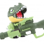 Acest set plin de acțiune oferă distracție grozavă pentru micii trăgători. Sarcina ta este să nimerești cu bilele în gura deschisă a dinozaurului. După lovirea țintei, aceasta reacționează cu efecte luminoase și sonore, astfel încât fiecare reușită este răsplătită, iar jocul devine și mai palpitant.