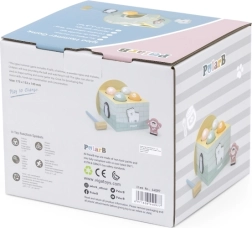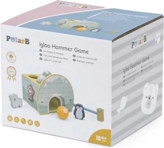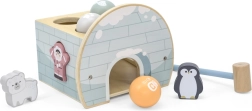 Jucăria pentru copii Igloo de la marca Viga este o alegere excelentă pentru cei mici. Această jucărie versatilă combină mai multe activități: wbijak pentru bile, sortator de forme și posibilitatea de joc cu figurine. Copiii își dezvoltă motricitatea fină a mâinilor, coordonarea mai bună și, treptat, abilități precum scrisul. Bilele, după o lovitură reușită cu ciocănelul, ies afară din iglu printr-o ușuliță mică. Dacă este nevoie de acces în interiorul igluului, se poate scoate panoul frontal.