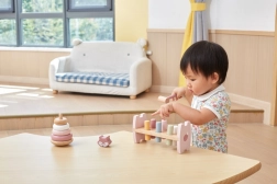 Cu ajutorul ciocanului și al asamblării piramidei, copiii își îmbunătățesc abilitățile motorii.