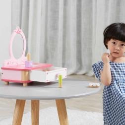 Toaleteta de lemn Viga oferă o oglindă și un sertar spațios, unde micile prințese își pot păstra comorile. Designul roz dă produsului un aspect elegant și se integrează perfect în camera copiilor.