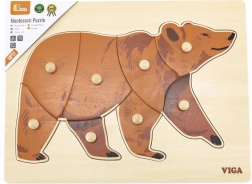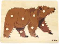 Această jucărie senzorială și educativă, inspirată de metoda Montessori, îi îndrumă pe copii să descopere formele și să asambleze imaginea ursului. Butonii mari din lemn ușurează manipularea, astfel încât copiii învață să introducă piesele cu precizie și își întăresc motricitatea fină.