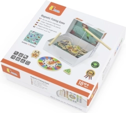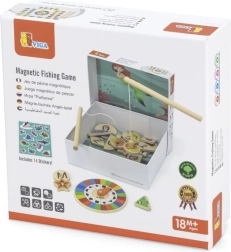 Distractiv și educativ, jocul de pescuit magnetic din lemn de la VIGA aduce 26 de peștișori magnetici cu litere, 2 undițe și o rotiță pentru alegerea capturii. Dezvoltă coordonarea mână–ochi, recunoașterea culorilor și a formelor și oferă multă distracție cu vopsele netoxice, începând de la 18 luni.